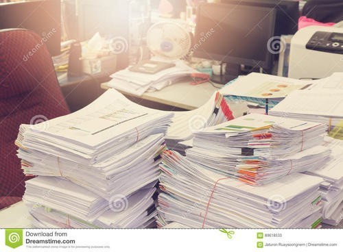 Him'看着桌上的公务'