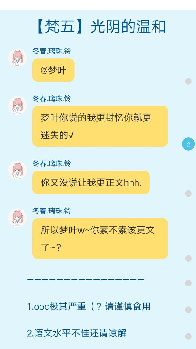 垃圾梦叶“@璃珠,我更了咪啾!”