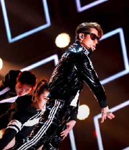 一段舞蹈结束出现的就是穿着亮亮的衣服,即使五十多岁了还依旧帅气的我们的郭天王-郭富城!