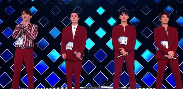 四个男生点点头,开始站位。