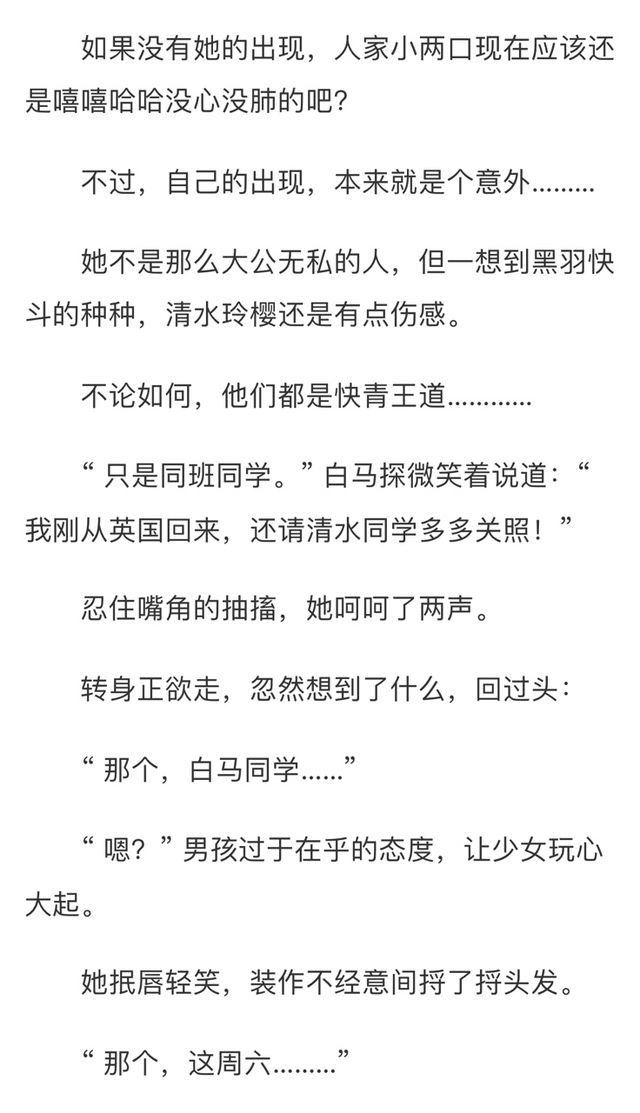 当他看到转天她又和没事人一样跟黑羽快斗一起去中森青子家吃饭,上课一起传纸条,就连今天早上还和那个学生会会长柏修相谈甚欢时………