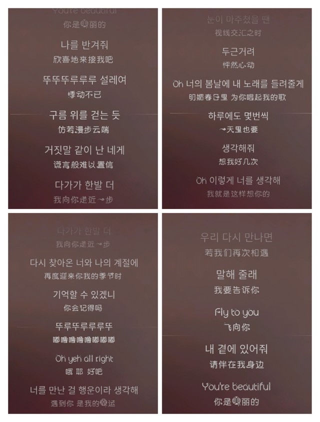边伯贤(深情坚定)我想每天醒来第一眼看到的就是你,我想每天都能牵着你的手出门、回家,我想我的生活里每时每刻都有你的身影。我的生活简单平凡,但是有了你,一切都变得更加的有意义,每天活得很精彩,因为有你!所以baby嫁给我,我会让你继续幸福下去的!