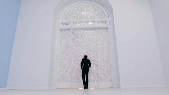 他走到一扇门前面,打开门,走了进去.