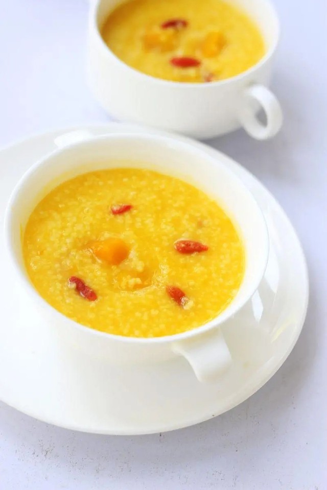陆清端着红枣南瓜小米粥来了。