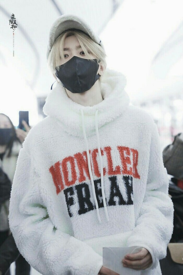 过了一会,蔡徐坤穿着白色的毛绒卫衣,下面穿着米色直筒裤