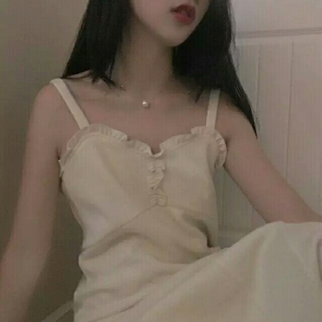 这次林七冉换了一件还是米色的吊带裙再配上一条林彦俊送她的项链好看极了