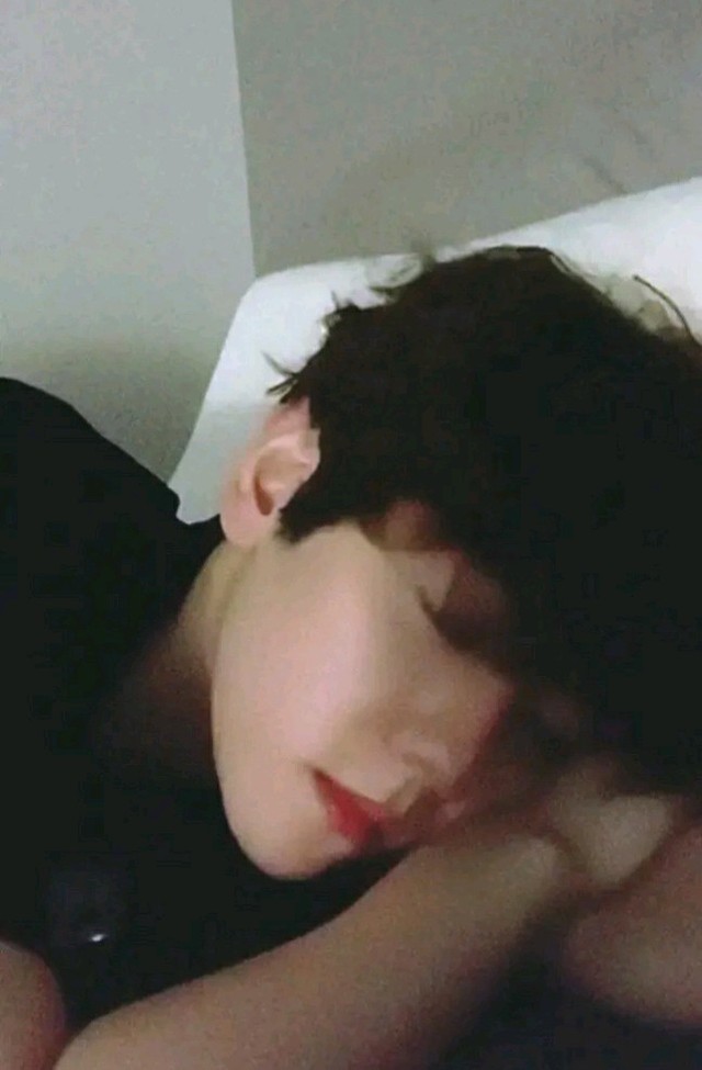 她没有吵醒伯贤,用手撑着头就这样看着他