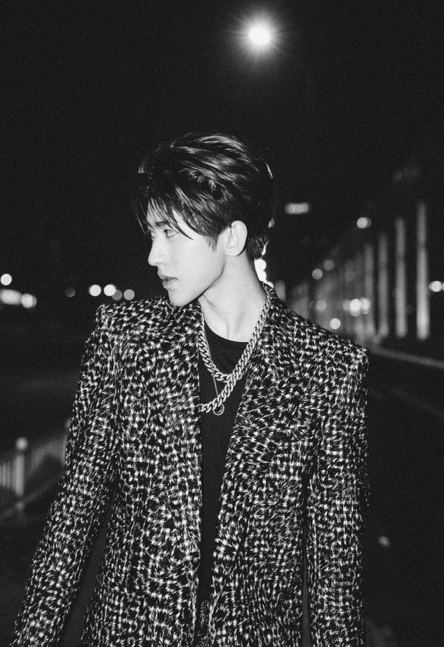 蔡徐坤抬眸嘴角挂着笑微微点头。