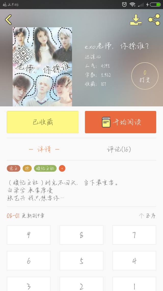 萌萌我们文社同志的书,有时间可以看一下,很好看的《exo老师,你撩谁》作者:边凉儿封面我做的喔哈哈哈哈哈,飘了飘了