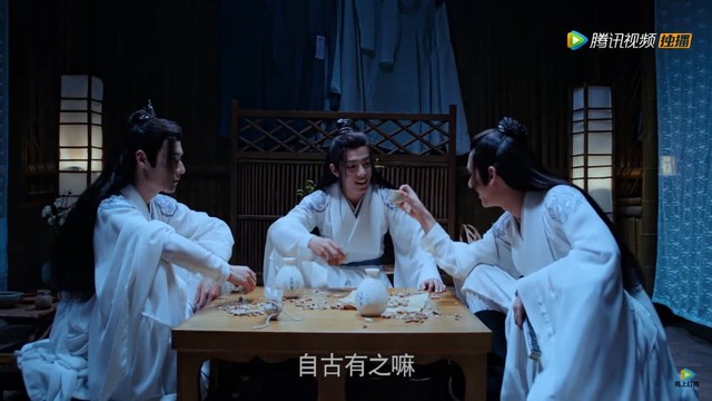 在一个月黑风高夜的夜晚,聂怀桑揣着花生米来找魏无羡,江澄也在魏无羡这里凑热闹喝酒。