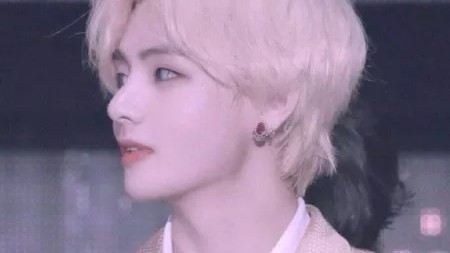 今天的金泰亨一头金发配着金色的西装,自带光芒。