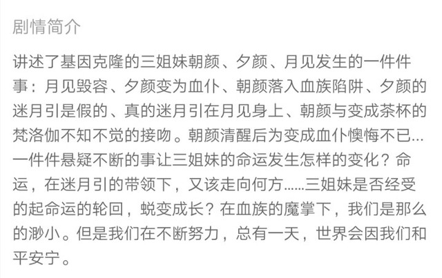 血族禁域是三姐妹的纠纷,爱恨离别,相互纠缠,但最后却终是离别。