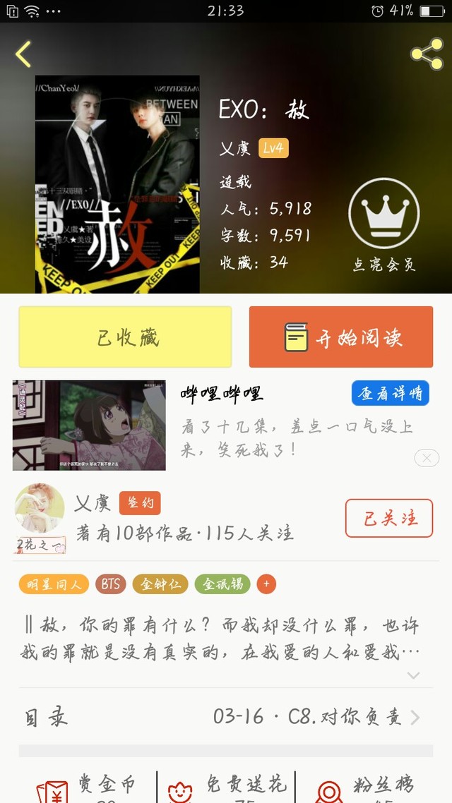 “然后呢,就是我的《坏家伙们》这一个文,我真的抱着积极的态度去写它,也得到了很大一部分的人支持,我真的很开心。”
