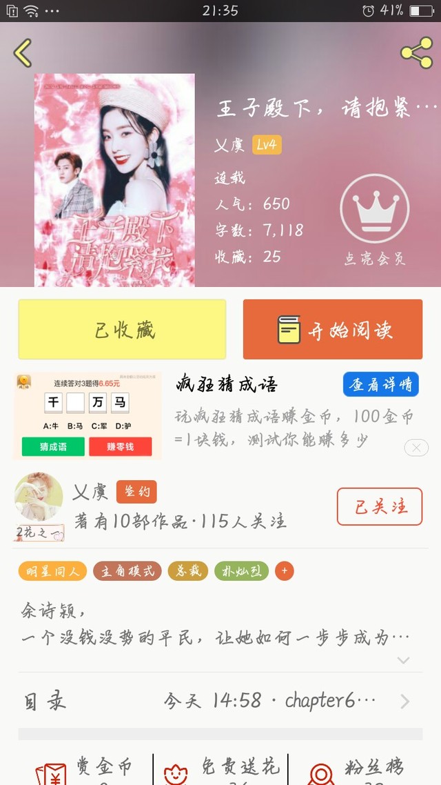 “然后之后就是王子殿下,请抱紧我这本书。这个文是我在学校的时候和我的伙伴一起写的。他应该算是承载着很多人的希望吧。很像电视剧的有没有?但是我发现我在写它的时候一天过的很慢,我写了3万字才到了没有一个星期。”