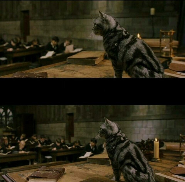 麦格教授已经来上课了,她先把讲桌变成一只肥胖的猫,又施了几个魔咒后,开始让我们写论文,然后施了个阿尼玛格斯,自己变成了一只花斑猫。