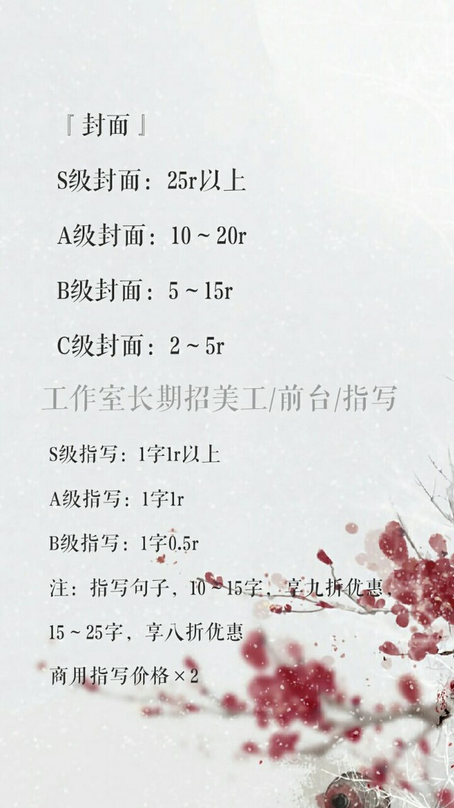 工作室长期招前台/美工/指写