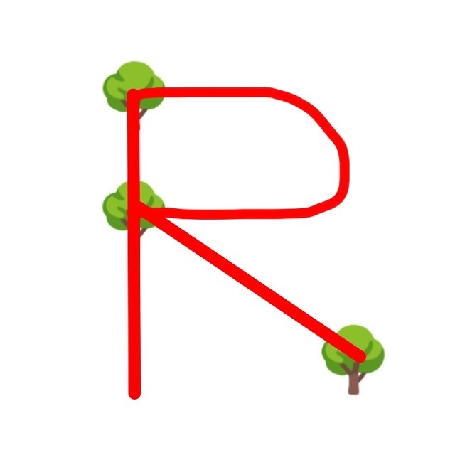 妮妮这个更奇怪了,如果正常来讲,是“O”吧?但第四棵树是长歪了?