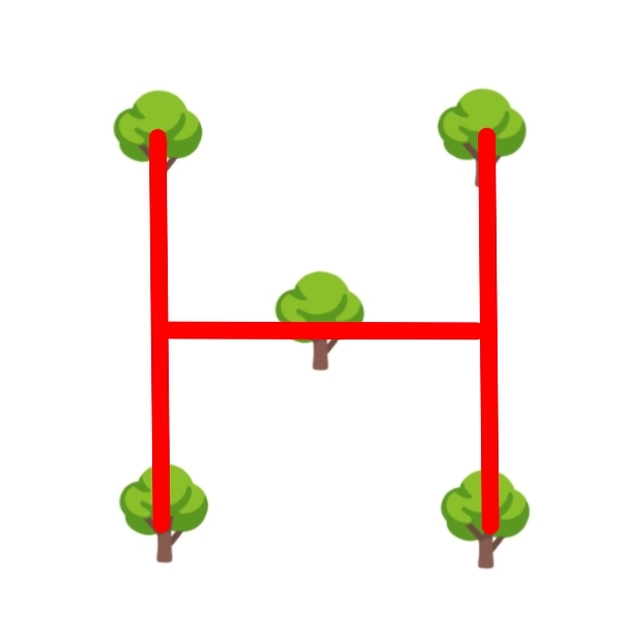 酋长如果是“L”的话,下面应该两棵树平行。