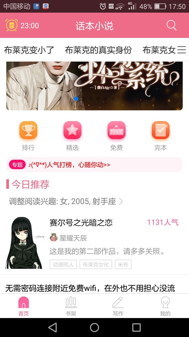 星耀天辰还有我发现这本书的人气和收藏涨的好快呀,这本书我才写四天,人气都有1000多,收藏有61人,快赶上我另一本书的收藏了,我另一本书都写了快四万字了,收藏和人气涨的还没这本快。😂😂