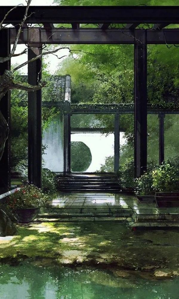 踏入昭若的清水居,眼前是一片古色古香的中国风,假山、荷塘、盆栽,无不精致典雅,小院里的那棵樱花树上还挂着一些灯笼