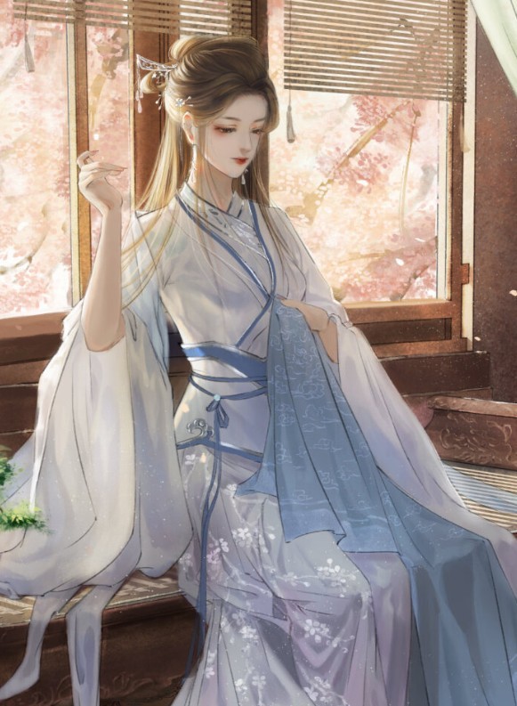 素日里的她不喜奢华,皆是素衣淡容。只见她一袭白衣显得清澈透明,亦真亦幻。双眸淡淡,给人一种幽静的感觉,她五官精致,俏鼻高挺,薄唇浅红,肌肤似雪。头上三尺青丝,两缕披在胸前,剩下的在头上挽成飞云髻,斜暂一支银月钗,钗上垂下水晶串成的吊坠,整个人看起来素雅而又不失气质,纤纤素手里拿着针线,慎密的缝补着,忽而一笑,却也同样惊艳众人