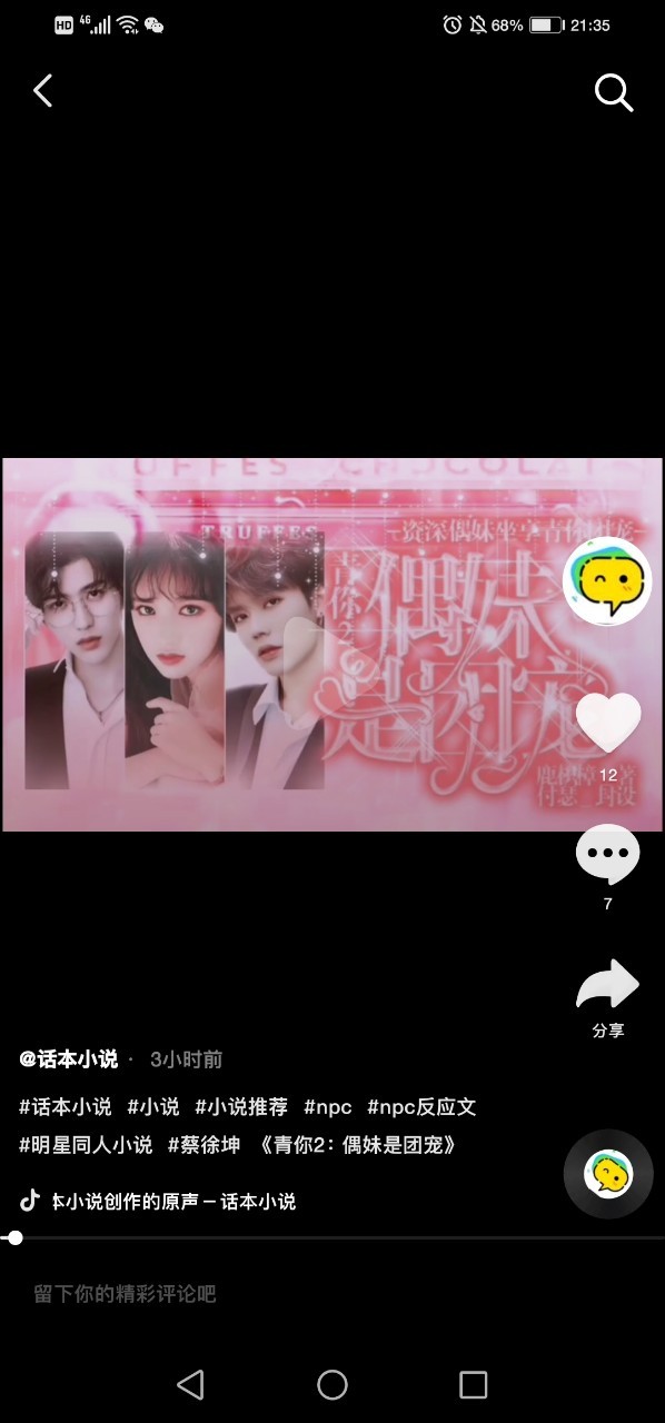 鹿枳樟“快去抖音话本官方看我!偶妹的宣传片上了!”