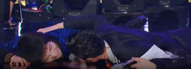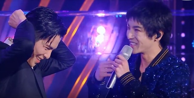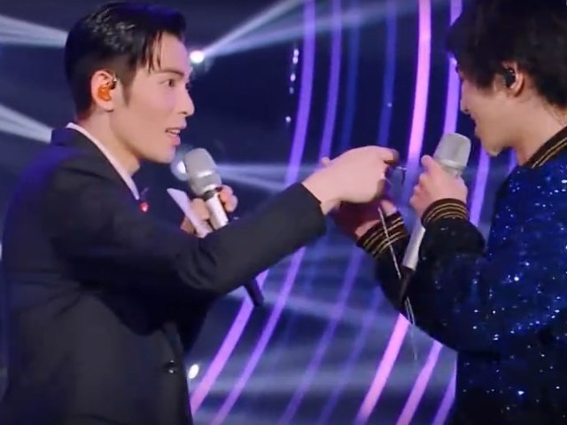 刘柏辛表演完后,华晨宇走过去的时,好像碰到了萧敬腾