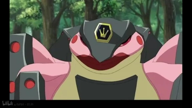 那只粉红色的青蛙神魄叫了一声,然后霸王棘蛙就向他扑了过去,却被八岐腾蛇一尾巴拉住了脚