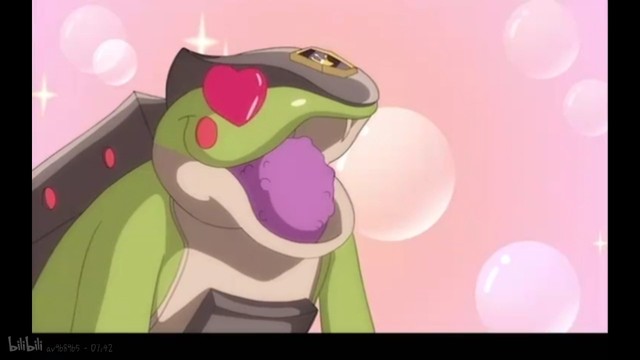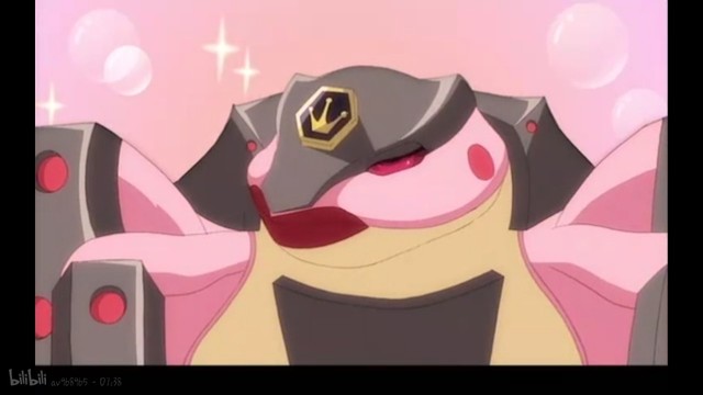 从草丛里面跳出了一只粉红色的青蛙神魄,霸王棘蛙的眼睛都冒红心了