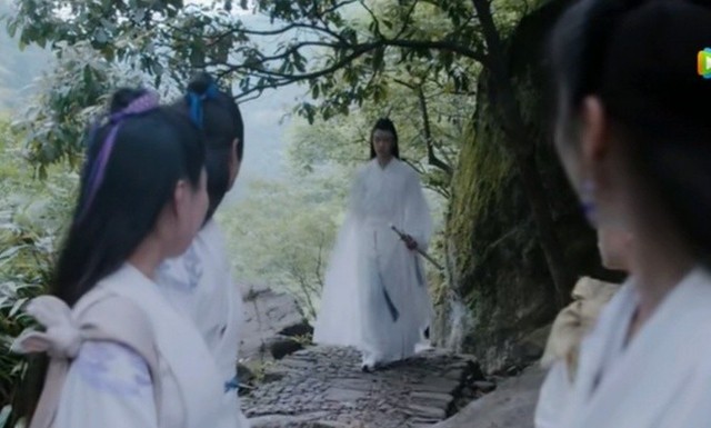 这时远处传来脚步声,众人转头一看,只见一个翩翩公子提着剑慢慢走来