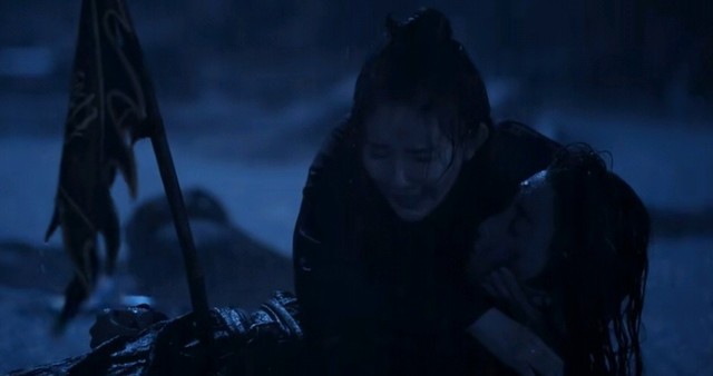 夜里,雨下得很大,魏无羡带着温情来到穷奇道,在路上见到婆婆问她温宁的情况,婆婆是欲言又止。温情急得一个个人询问,却没有人告诉她温情的下落。魏无羡怒问那些看守穷奇道的金氏门生,他们称温家的人尸体被扔在对面山谷里。温情和魏无羡来到对面山谷,那里尸横遍野。温情跌跌撞撞地一具具尸体地查看是否有阿宁,不停地哭喊着,终于找到了温宁的尸体,悲伤痛哭。