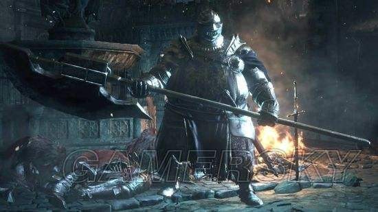 “洛斯里克骑士剑+3,还有银鹫鸢型盾,洛斯里克骑士铠甲一套,这防御目前是没有问题的。攻击的话,也还可以了。”