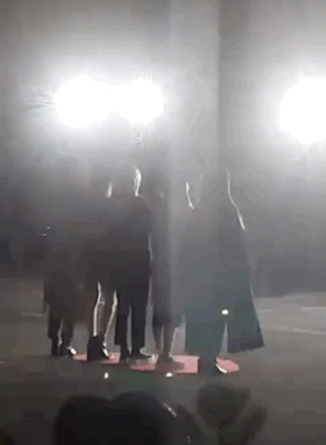 银在站在中间,面对着这么多的相机还有闪光灯