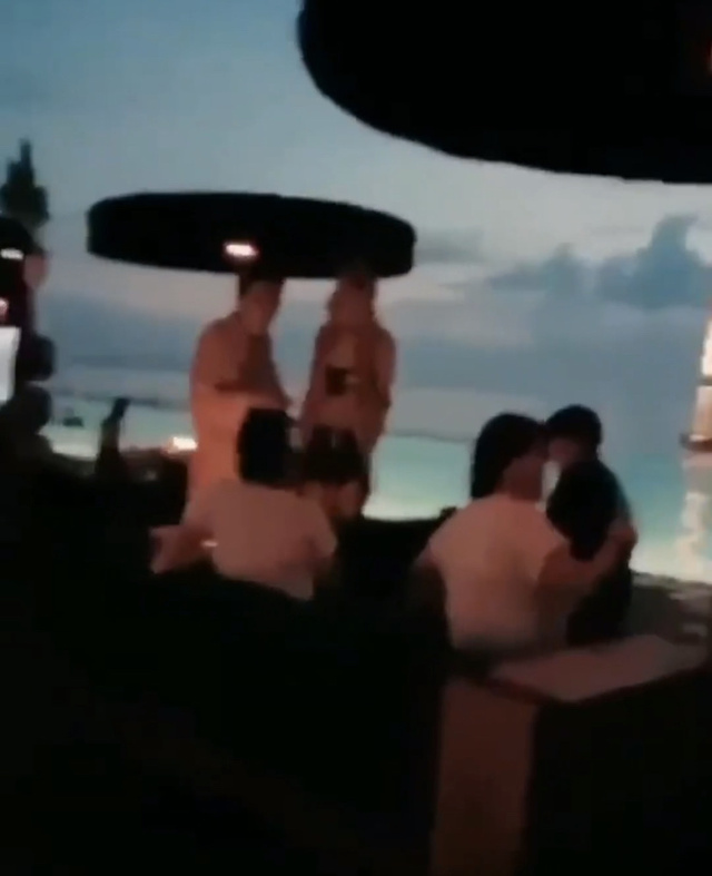 她们还毫不知情的跟别人合照呢!