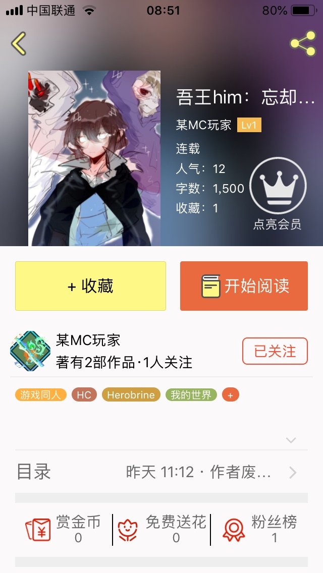 作者小飞就是这一本,书名叫《吾王him:忘却,重新开始》