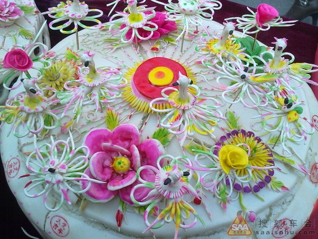 到了地方,岚先和面,等到面好后放入各种调料,再把面团揉成一个球状,等到面团快要干了的时候,岚开始细心地雕刻着,一点一点的,仿佛世界上只剩下了他和面团,小心的,慢慢地面团就从圆滚滚变成了一个个栩栩如生的动物,让人都舍不得去吃掉。