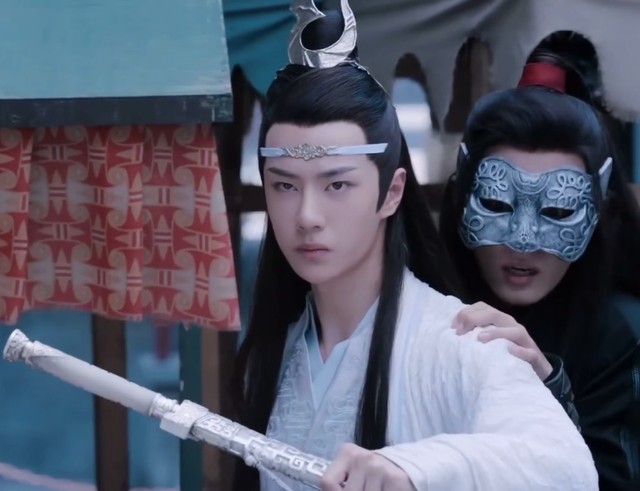 蓝忘机循着声音赶过来,挡在魏无羡身前
