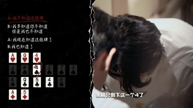 野妄B说他也知道了,那直接排除花色相同的红桃Q,4,只剩下。