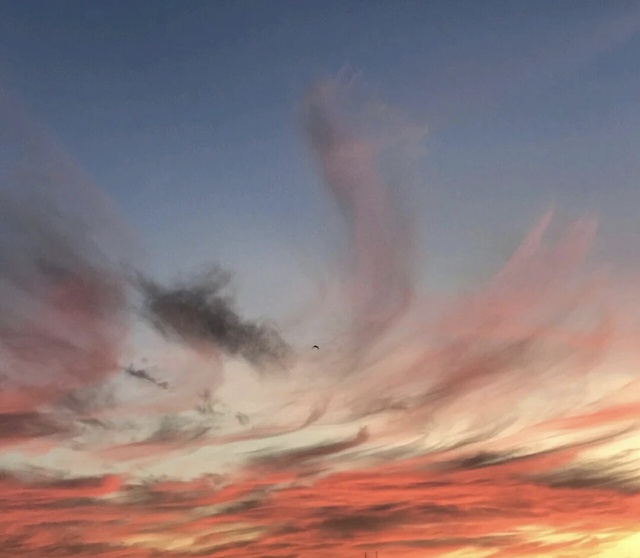 比黄色还要鲜艳的橙色,还带着点好看的粉色。配上白白的云。在山顶上看的更加清楚。