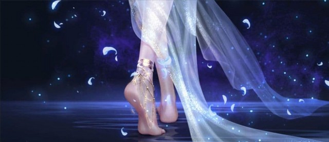突然有点儿结巴了:"师,师...师姐,你鞋子呢!"