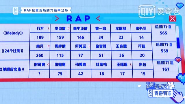 季梦薇恭喜谢可寅以401票带领小组获得rap组第一