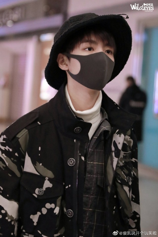 王俊凯刚下机场,穿着一件黑色的长外套,戴着帽子和口罩低着头匆忙的走过,看不清表情,只是走过粉丝身边的时候会挥挥手。