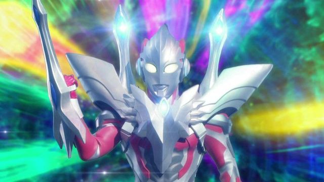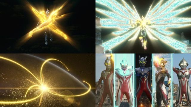 只见艾克斯奥特曼超越型贝塔火花装甲吸收天空之光与大地之光后进入圣者模式,在背部张开闪耀着水晶光芒的“ 虚拟之翼”的强化版究极进化姿态,可以使自己的能量上限达到最高,也能够帮助其他的奥特战士恢复并充满能量。