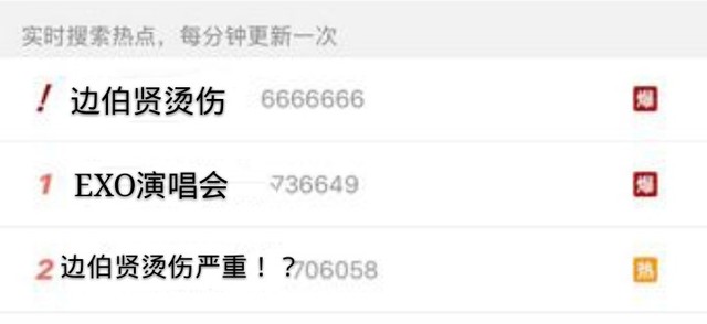 经纪人迅速把边伯贤送到了医院,因为水的温度很高所以烫伤有点严重,以后可能会留疤…