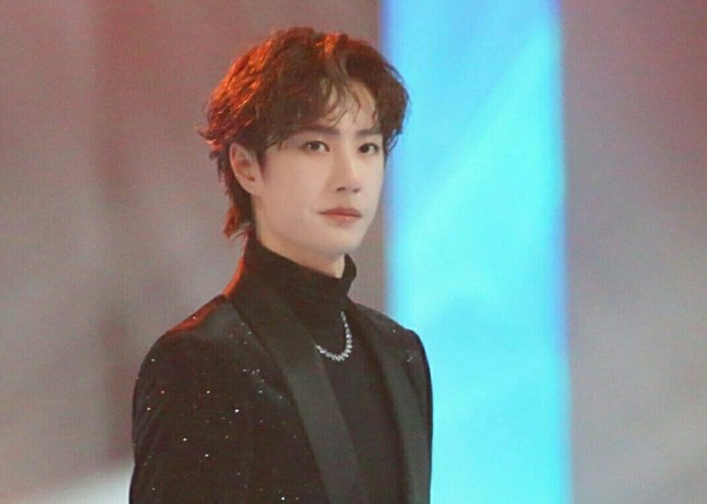 舞台上,聚光灯打向王一博。他穿着黑色的西装缓缓走向舞台