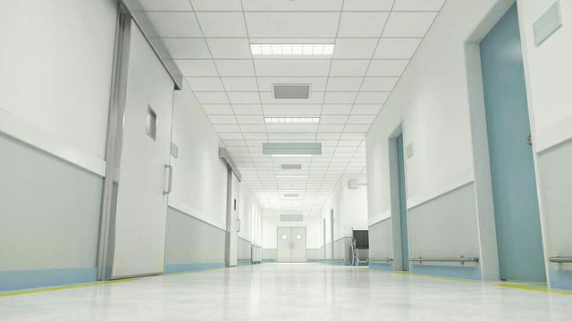 整个医院天台被透明板子封闭起来,既能看到外面全部的景色,又能不受风。