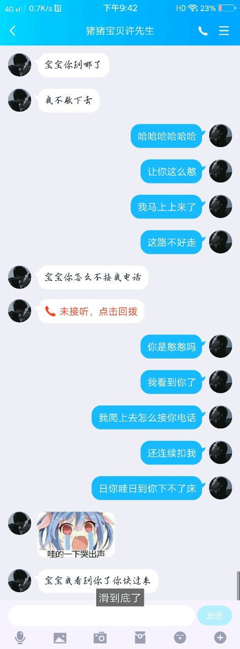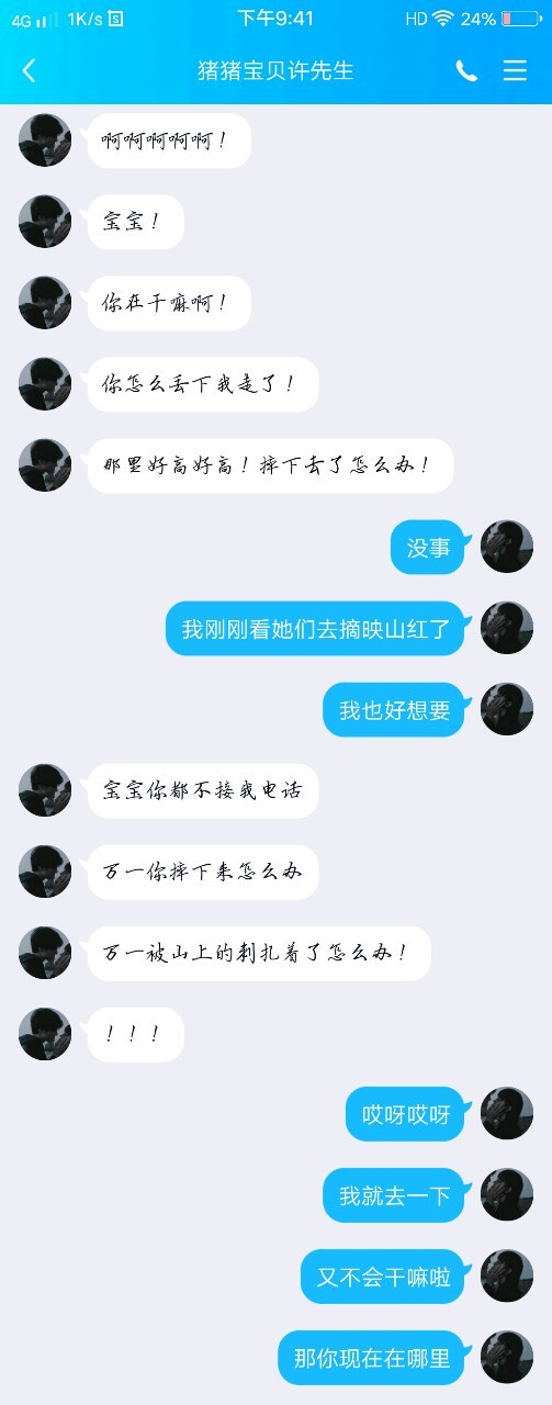 “宝宝你刚才为什么不接我电话我怕你摔着了”