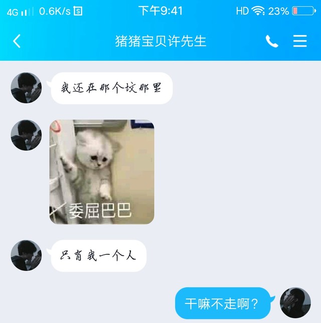 “宝宝你刚才为什么不等我自己走了,委屈巴.巴”