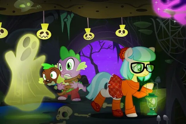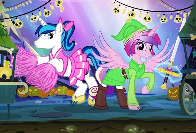 星光叫小蝶去换万圣节的服装,说实话,小蝶从一开始听到万圣节就害怕地躲起来,只是听到朋友们叫了一些人(马)也一起庆祝,才想一起庆祝的。小蝶走了进去,小蝶走进去后,余晖走过来,“咦?小蝶她们呢?”星光回答道:“呵,她们都在里面换服装呢。”