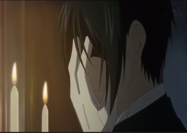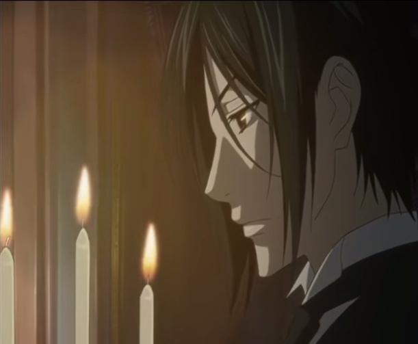 塞巴斯蒂安将烛台放到桌上,自己则走到床边,单膝跪地。